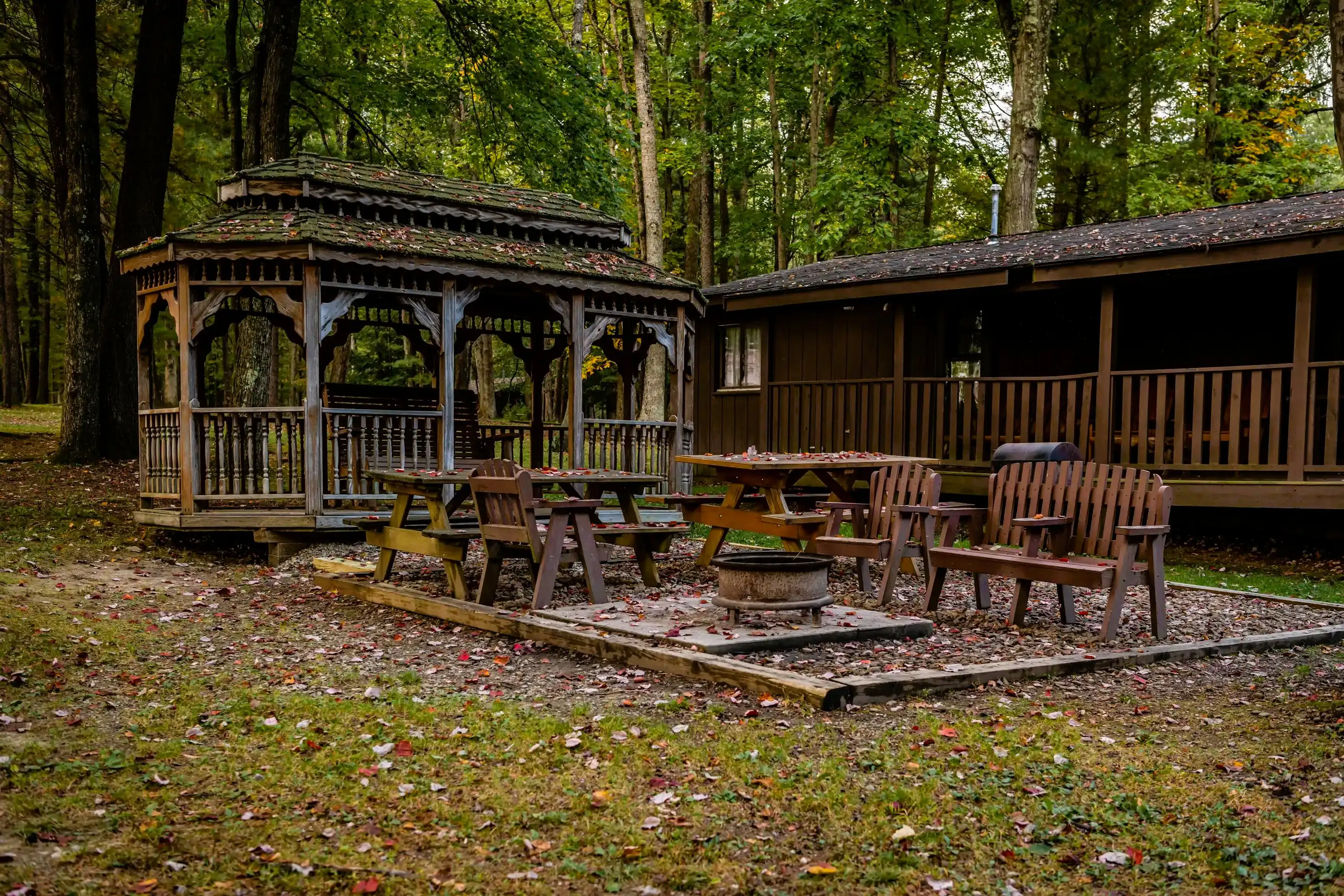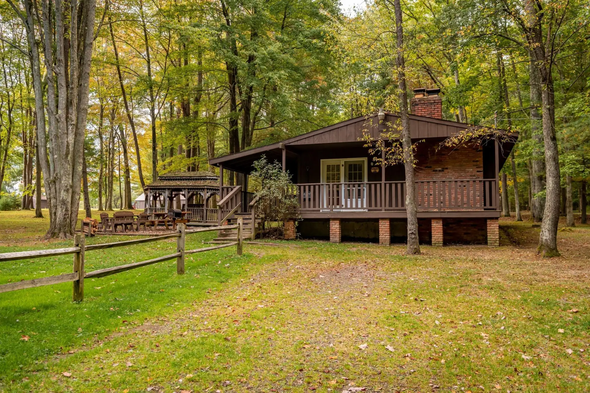 Hemlock Haven is situated on over 2 acres of land and includes an outdoor picnic area with a fire ring, lawn furniture, 2 picnic tables, and a charcoal grill. The large wrap-around porch provides an outdoor place to relax while watching the deer, birds, squirrels, and chipmunks that are plentiful in the Cook Forest area.