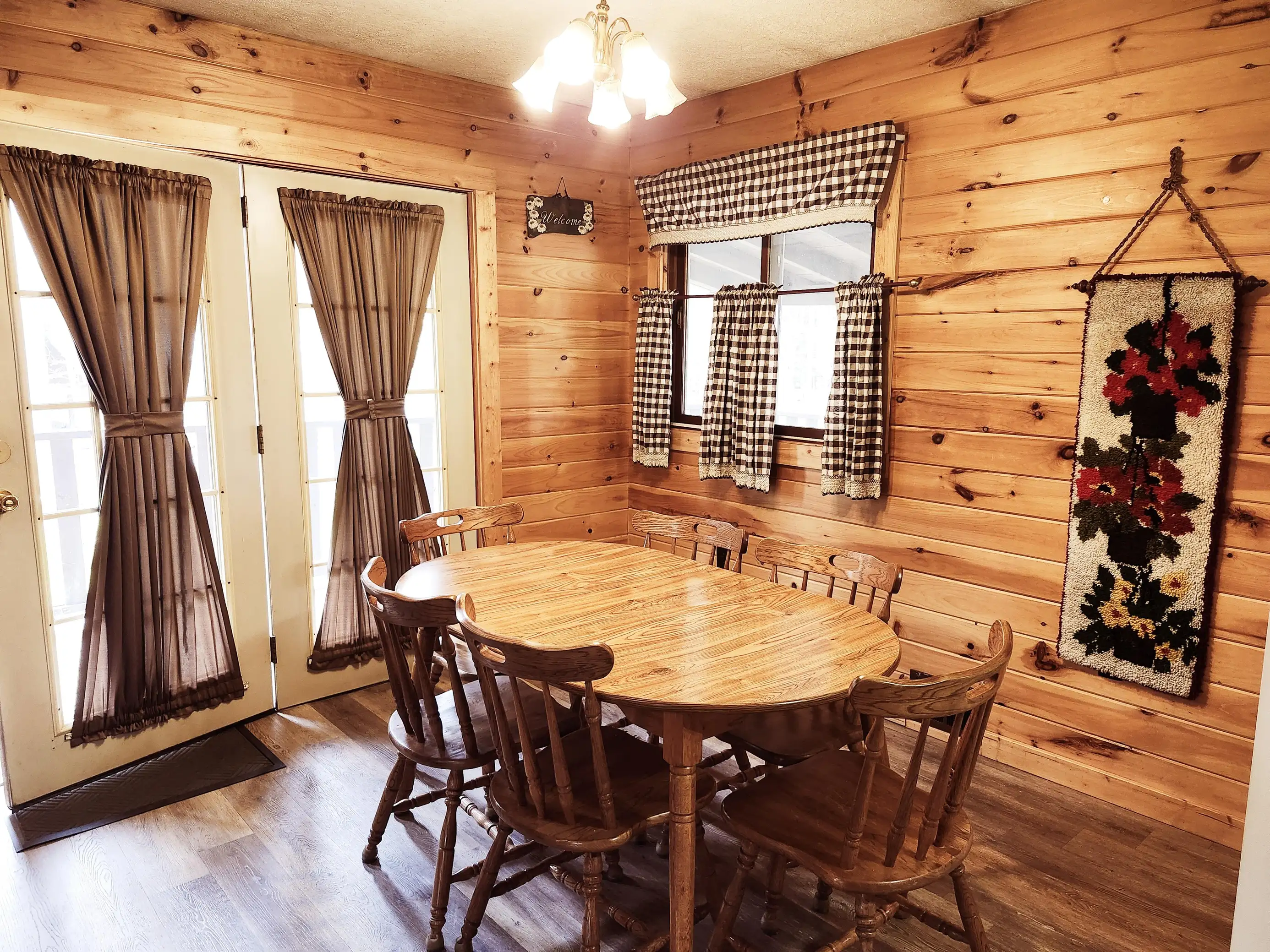 Hemlock Haven has 3 bedrooms and a great room area with a combined kitchen, dining, and living room, sleeping up to 8 persons. This cabin provides a wonderful family retreat.