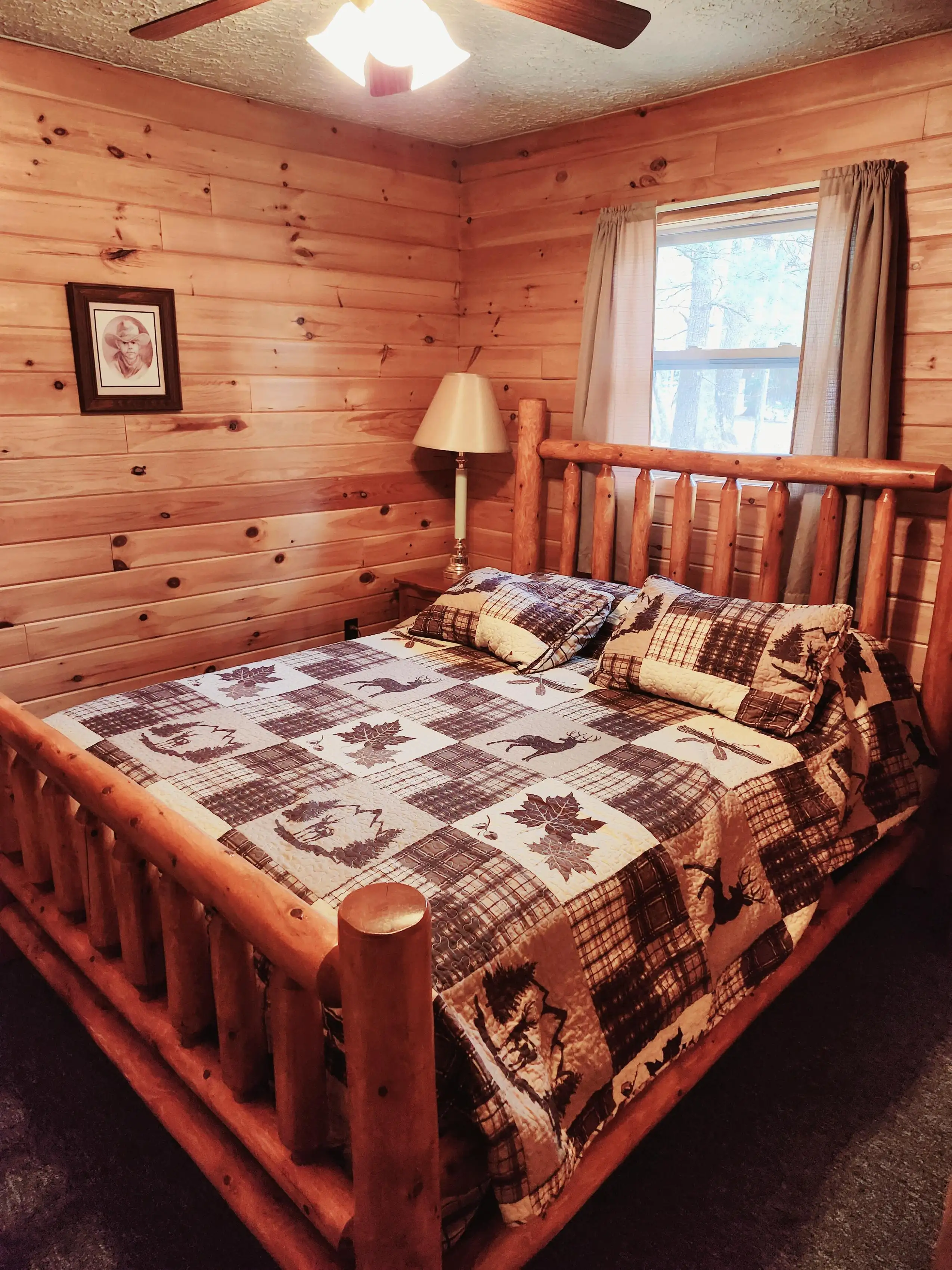 Hemlock Haven features a huge wrap-around porch with plenty of outdoor furniture and is one of our largest and roomiest cabins. The cabin's interior has been completed with knotty pine wood.